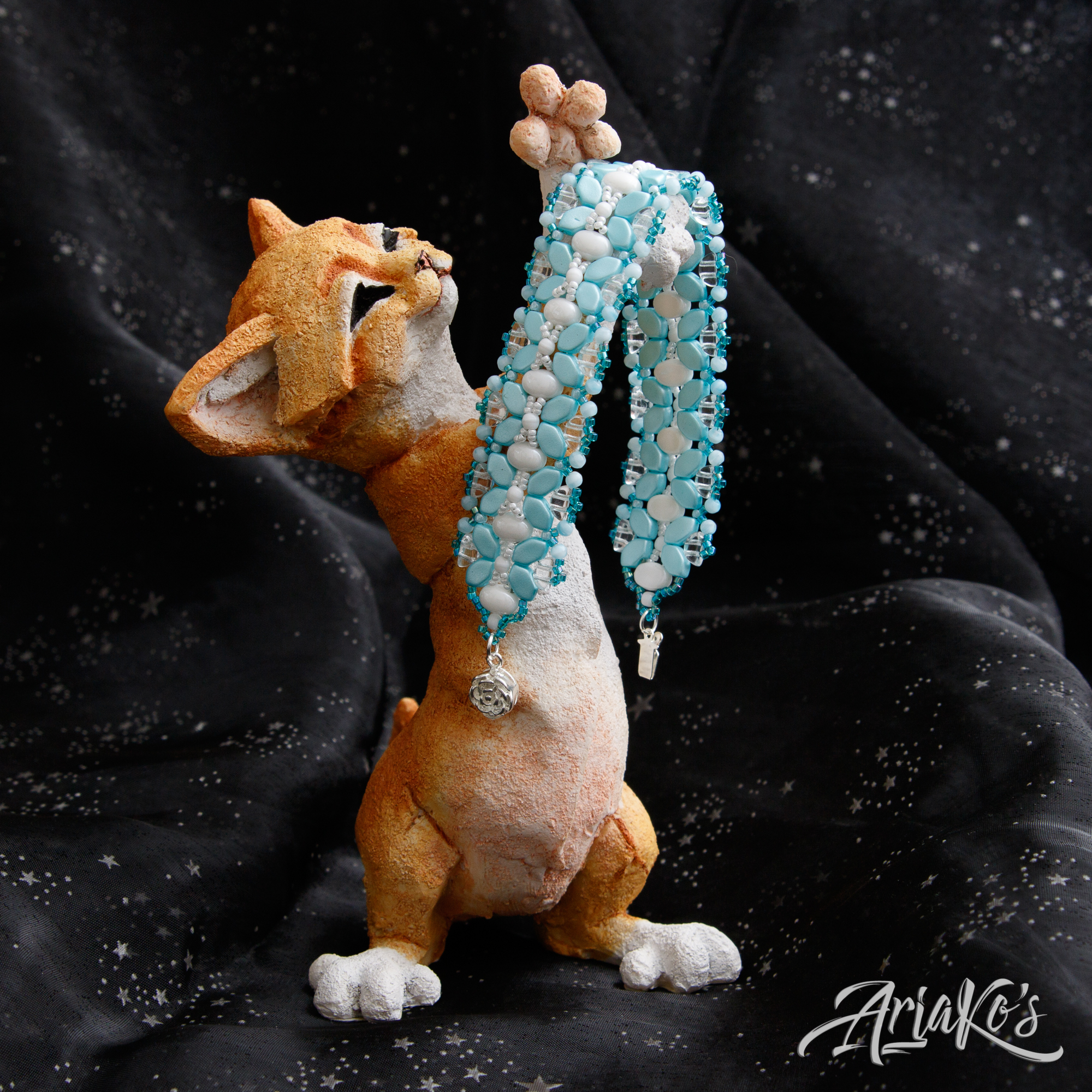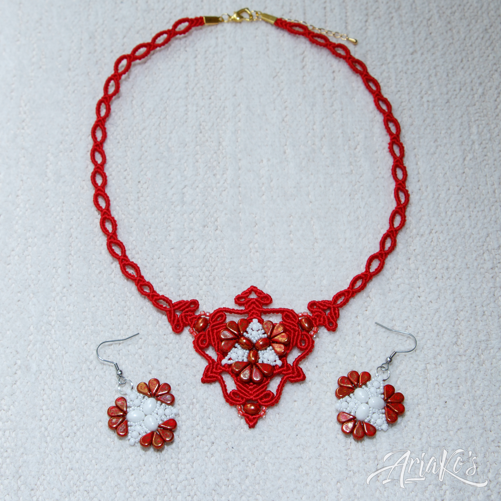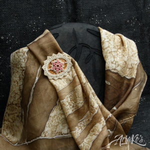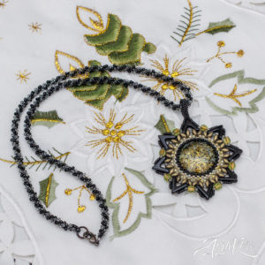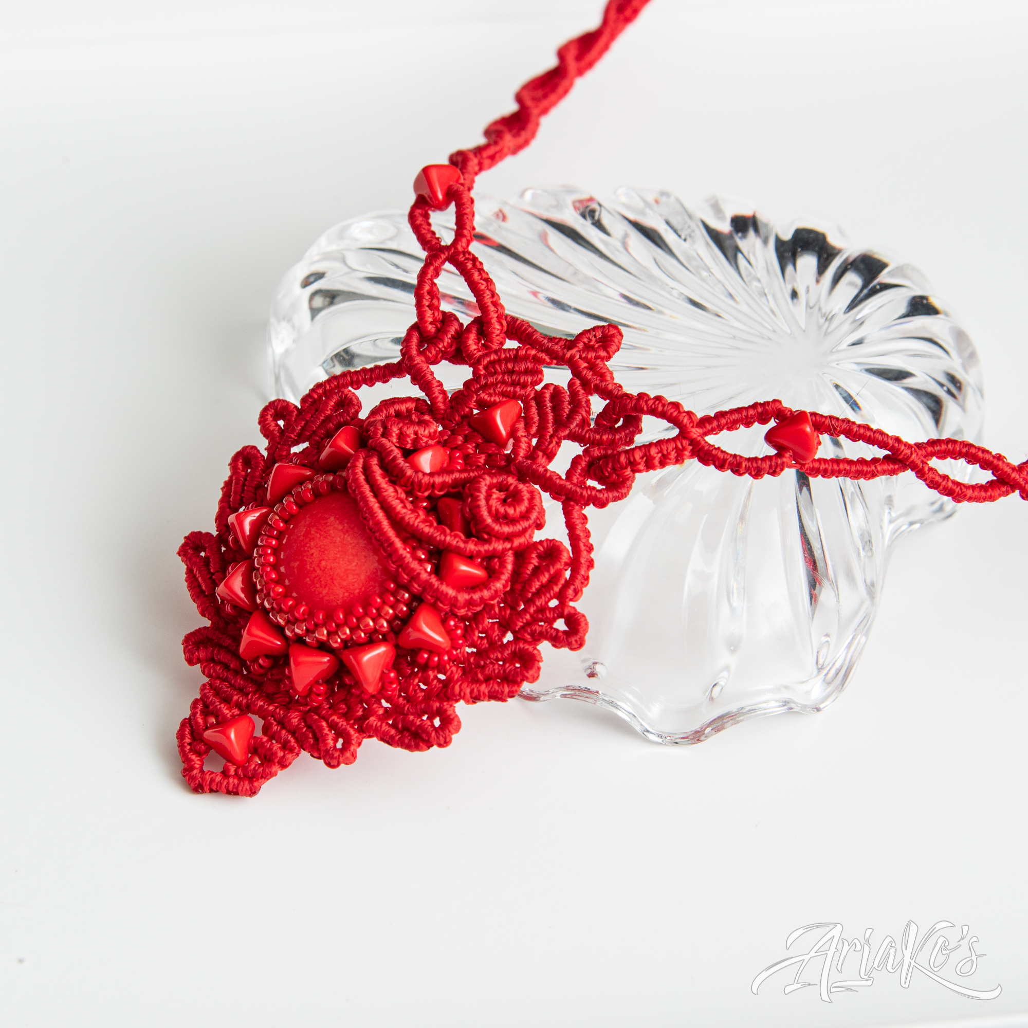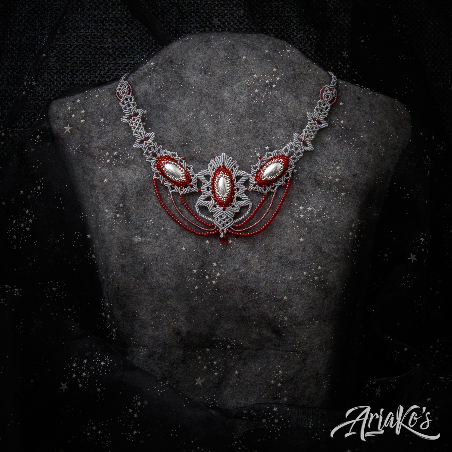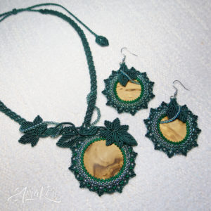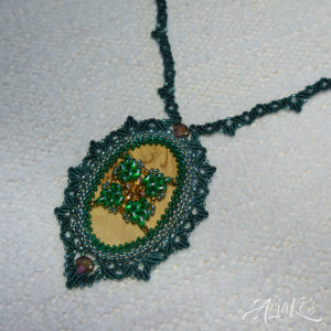 Hybridisetti visakoivua, helmiä ja mustaa makrameeta.