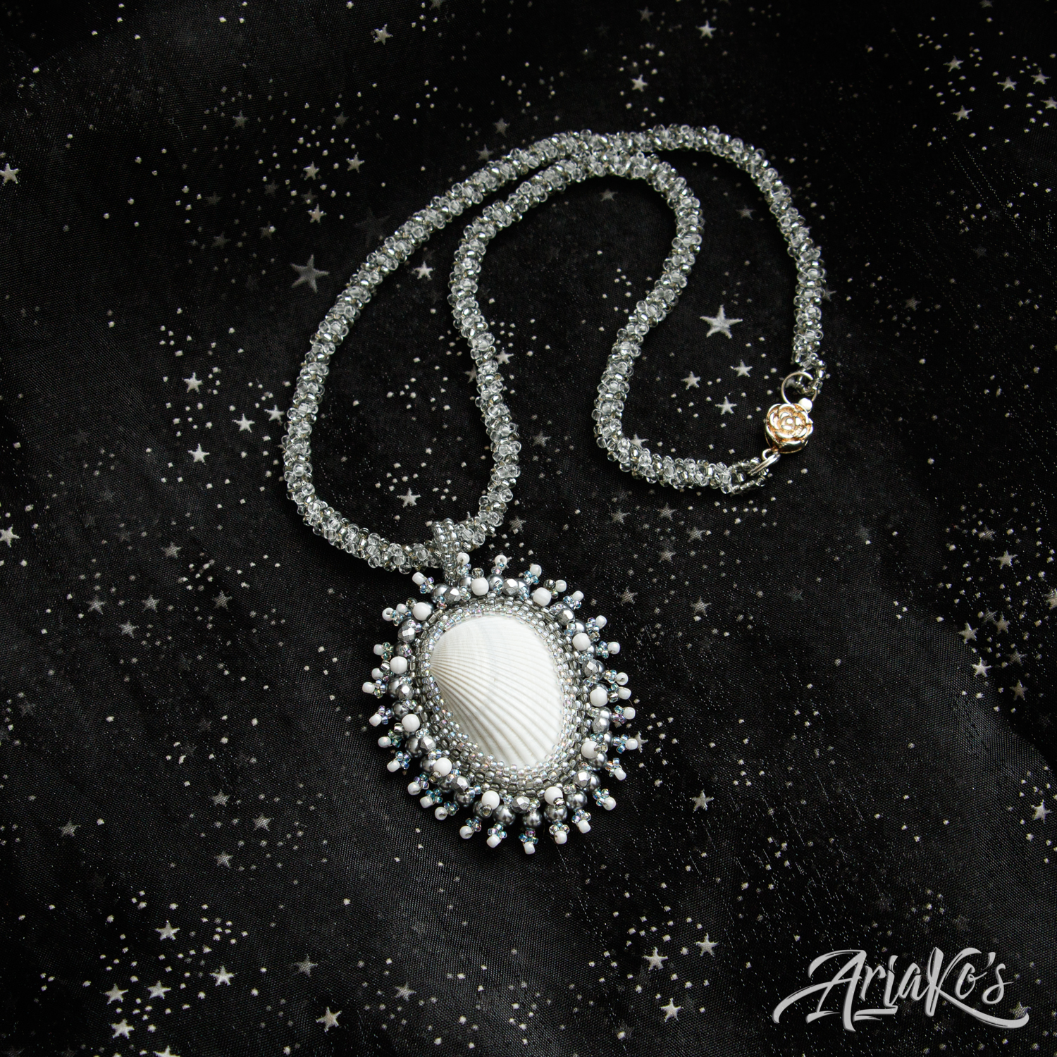 Helmiriipus, jonka keskustana on simpukankuori.